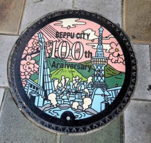 ちなみに、このマンホールは別府市制100年記念デザインです。
